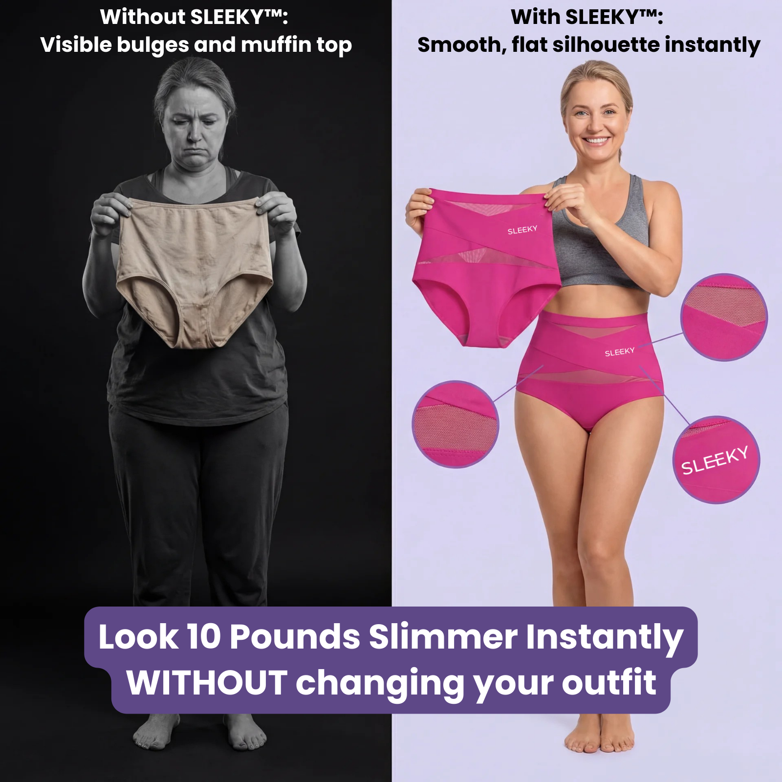 ✨ Smooths bulges and muffin top — no sucking in, no stress
