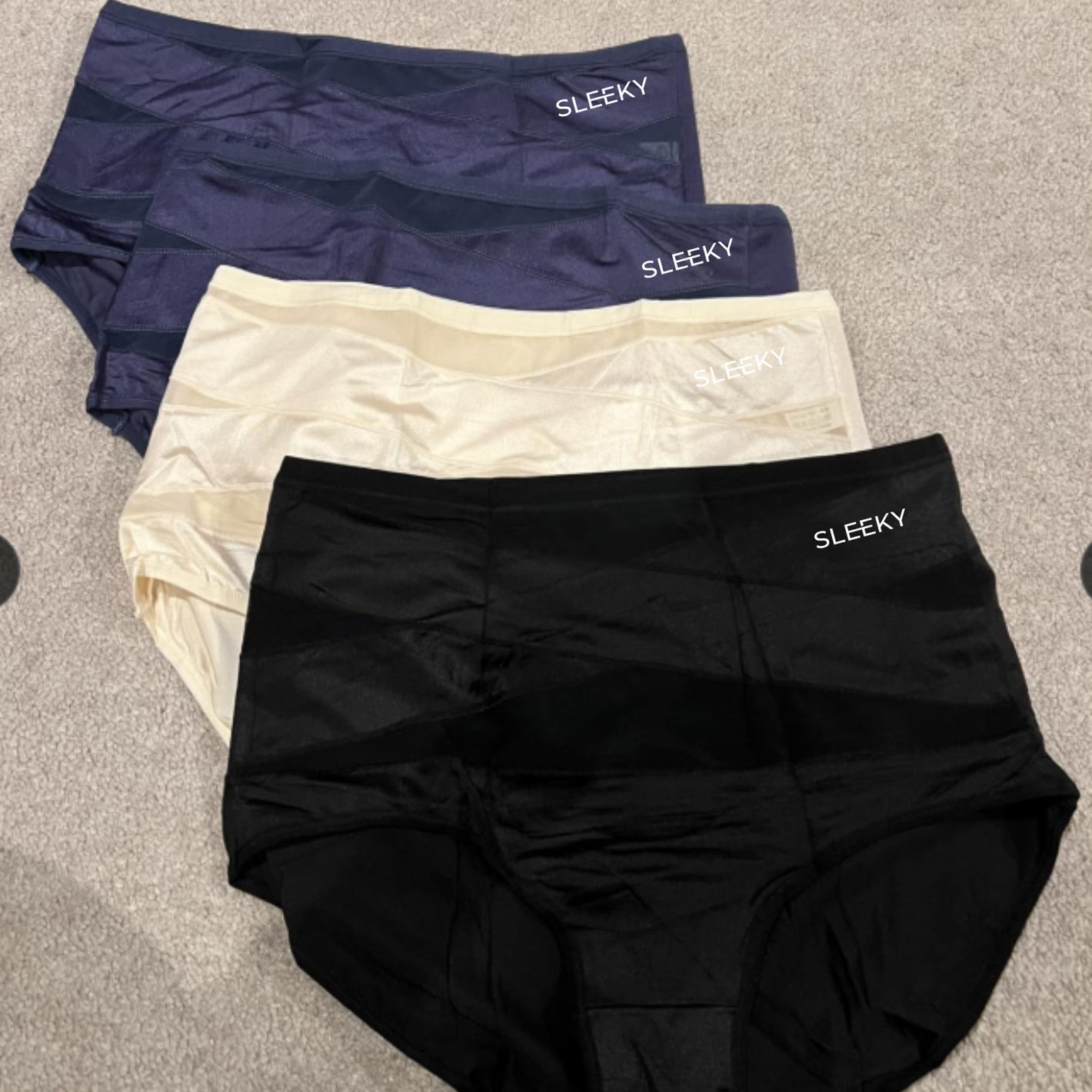 Absolutely not! Our Sleeky compression briefs feature seamless edges and ultra-smooth fabric specifically designed to be invisible under any outfit - from tight jeans to fitted dresses. The thin, stretchy material lies completely flat against your skin, eliminating any visible panty lines (VPL). You can wear them confidently under your most form-fitting clothes without anyone knowing your secret!
